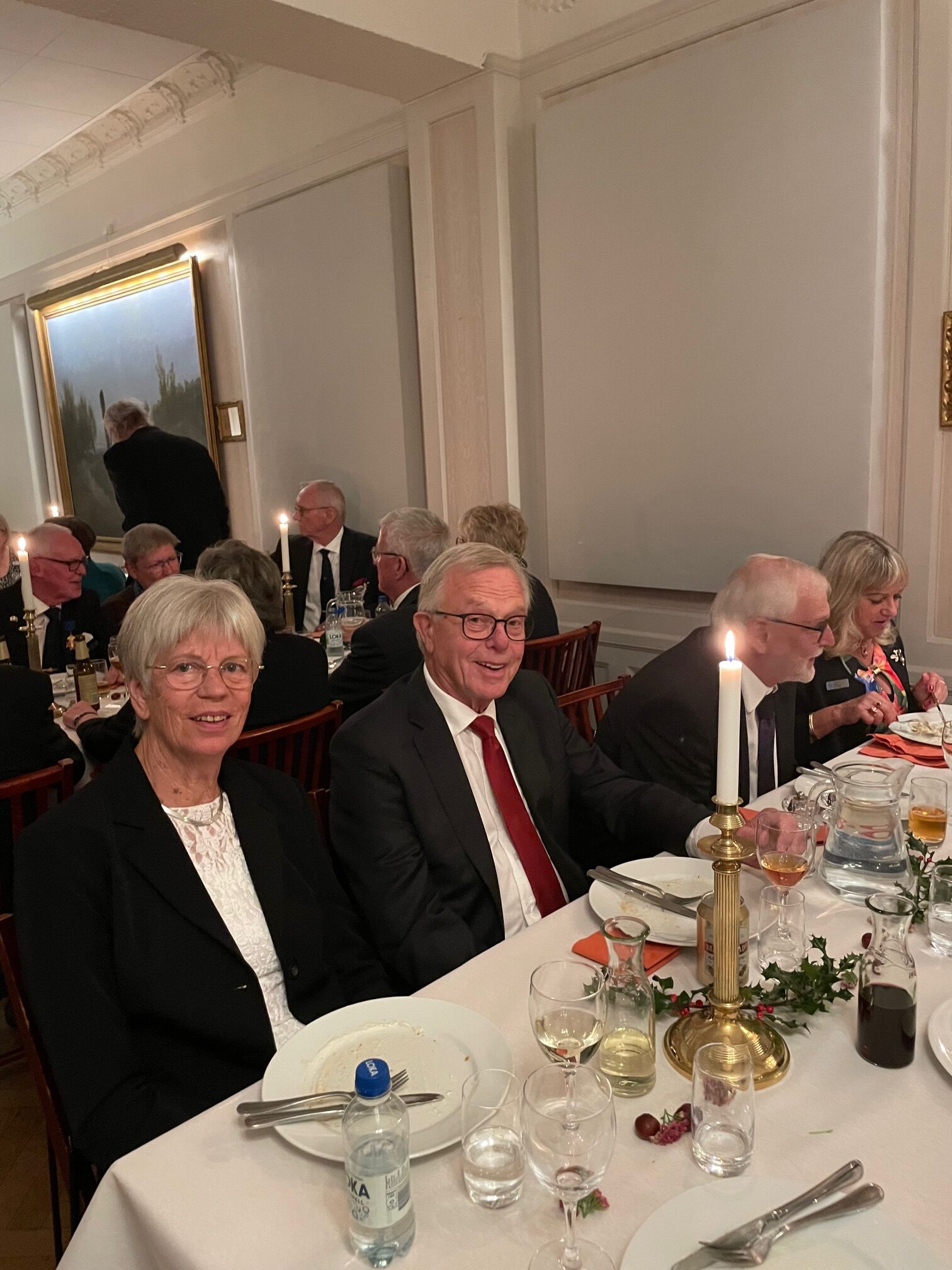 Efteråt fortsatte firandet med en jubileumsbankett med tre rätter. Förrätten bestod av en räkcocktail i modern tappning. Huvudrätten av helstekt oxfilé serverad med pommes Anna, sockerärtor, morotsstavar, gelé och rödvinsås. Desserten bestod av jordgubbsmousse serverad i rån med färska jordgubbar. Till detta serverades olika passande viner.