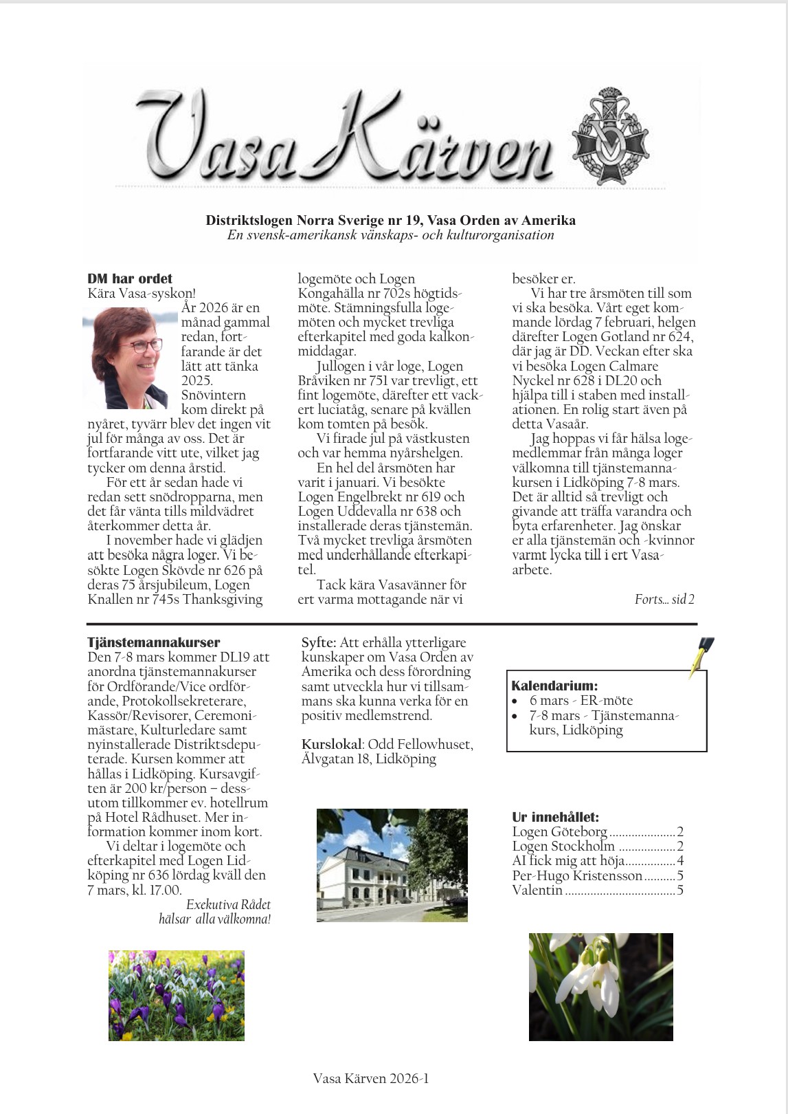 I VASA KÄRVEN förmedlas information om aktiviteter från lokalloger och aktualiteter från Distriktslogen.